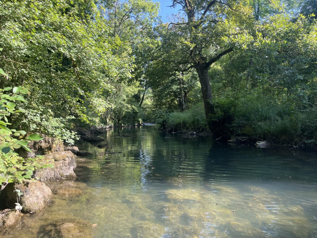 Po výletě se ochladíme v jezeře Lac d’Annecy a přemístíme se do stínu lesa ke křišťálové řece L’Eau Morte. Kolem půl šesté nad námi krouží Martin a přistane na sousední louce. Uvaříme si u řeky večeři a na noc se přemístíme nad Annecy, kde si najdeme místo na spaní v lese.