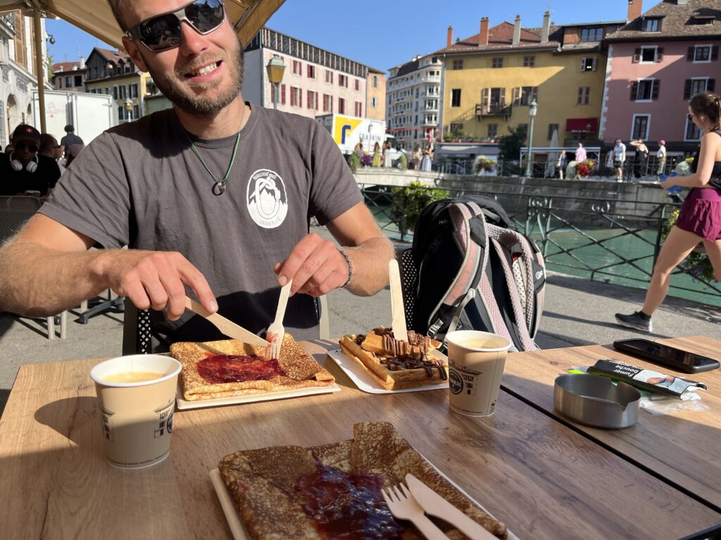 Ráno se sbalíme brzy. Chceme stihnout město před návalem turistů. Projdeme se historickými uličkami Annecy, posnídáme palačinky a wafle a vydáme se na dlouhou cestu domů.