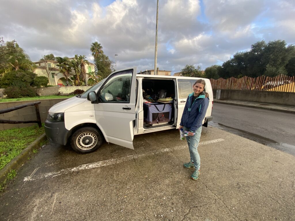 Všichni se jedou schovat do penzionu v Bari Sardo, jen já, Martin a Kiai zůstaneme statečně spát v dodávce. Ve čtyři ráno nás budí rána jako z děla. Kousek od nás střelil hrom a spustil krupobití. Naštěstí nedochází k žádné újmě a jak my v dodávce, tak druhá skupina v passatu můžeme vyrazit dál.
