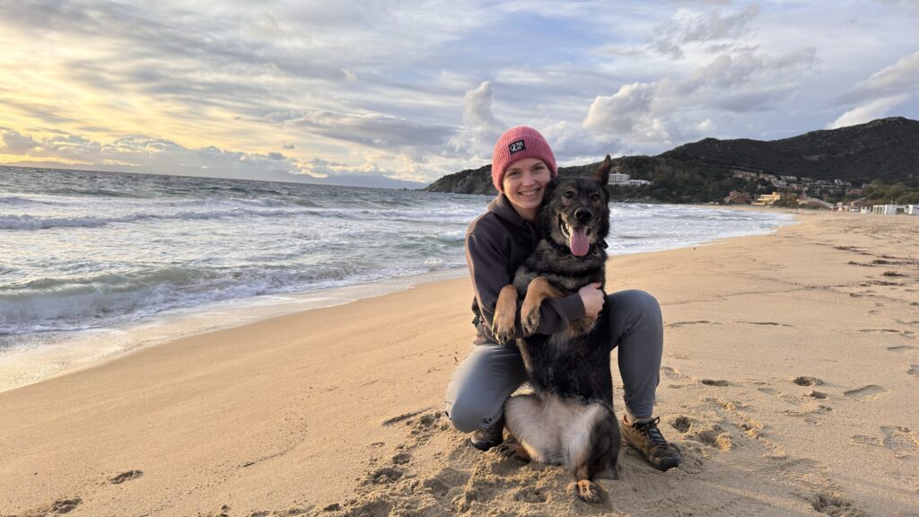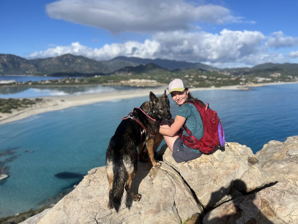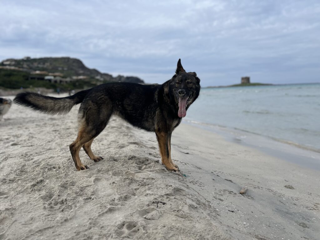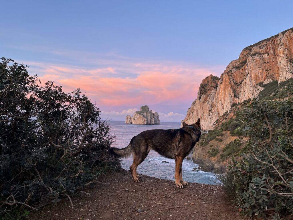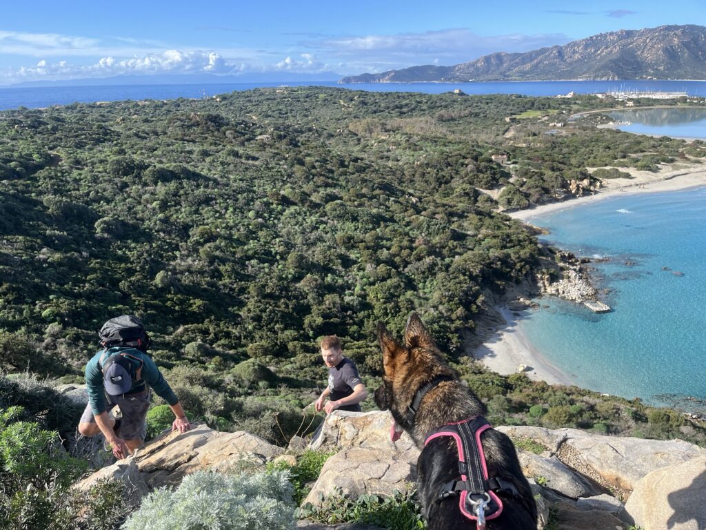 Rozcvičkou před nejvyšším sardinským vrcholem je pro nás vrchol Pranu S. Vittoria. Kiai i Zaria mají cestou na práci vyčmuchat divokou zvěř a proto se mi cesta s ovčákem na sedáku vůbec nelíbí. Je to asi daň za to, že všechny předchozí dny byla naopak extrémně hodná, protože obecně na Sardinii kolem pobřeží moc divoké zvěře není.