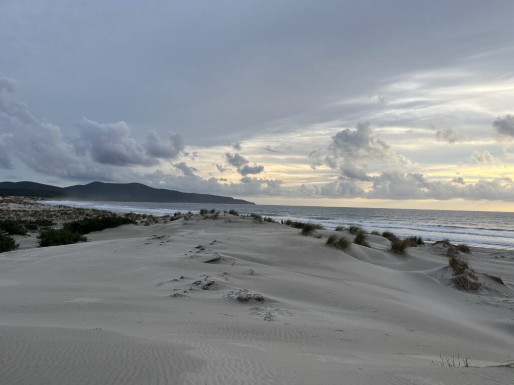 Ráno jsem nevyspalá. Trochu mě probere pláž na kraji města, kde se dá dopoledne vykoupat i s Kiai a bez davů lidí. Se psem je ale stejně nutné jít na začátek útesu mimo pláž.