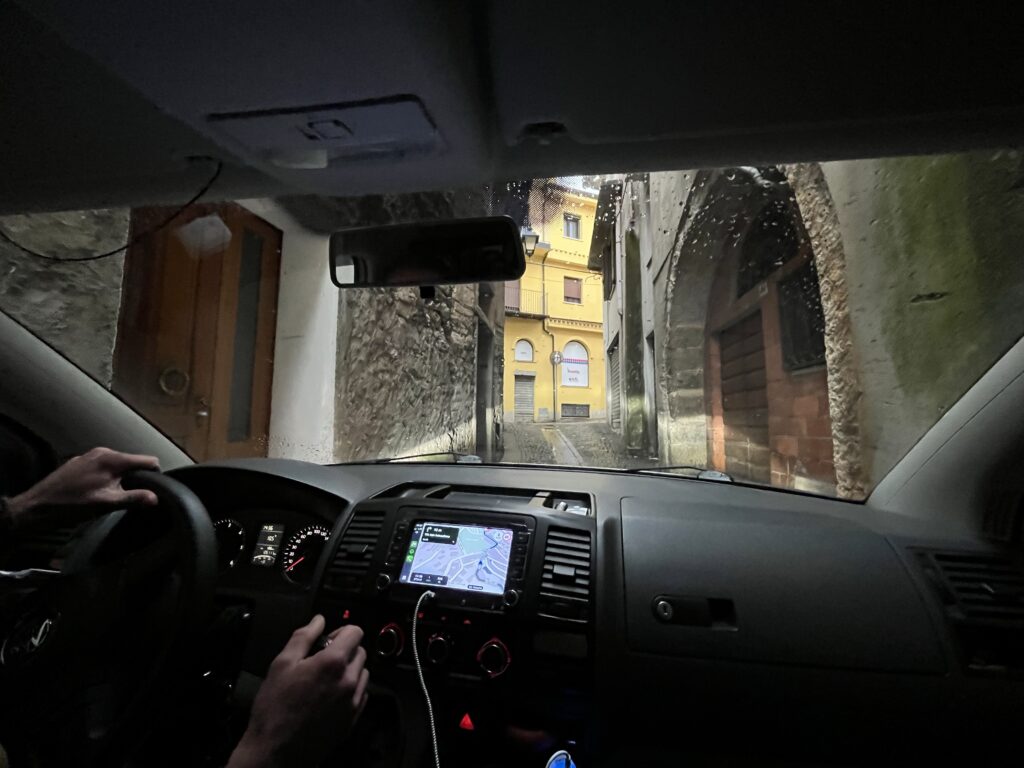 Po krkolomné jízdě končíme kdesi pod stromem ve Foresta di Sorilis, kde není vůbec žádný signál a taky leje jako z konve.