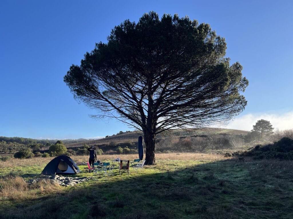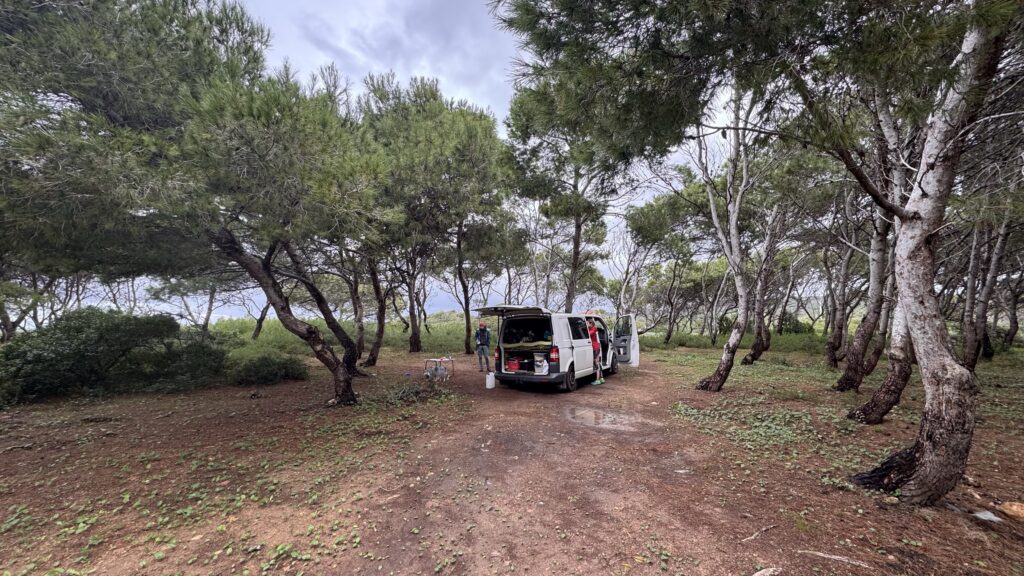 Mezi duby, borovicemi a hustými keři nacházíme roztomilé místečko na stanování kousek od města Triei.